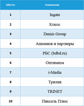 Этот год был непростой для сферы SEO, но многие компании успешно прошли испытание, что и отражает наш рейтинг. А мы, в которой раз, убеждаемся, что активная позиция на рынке, грамотная рекламная и PR-политика приносят компаниям не только имиджевые дивиденды, но и реальных клиентов.