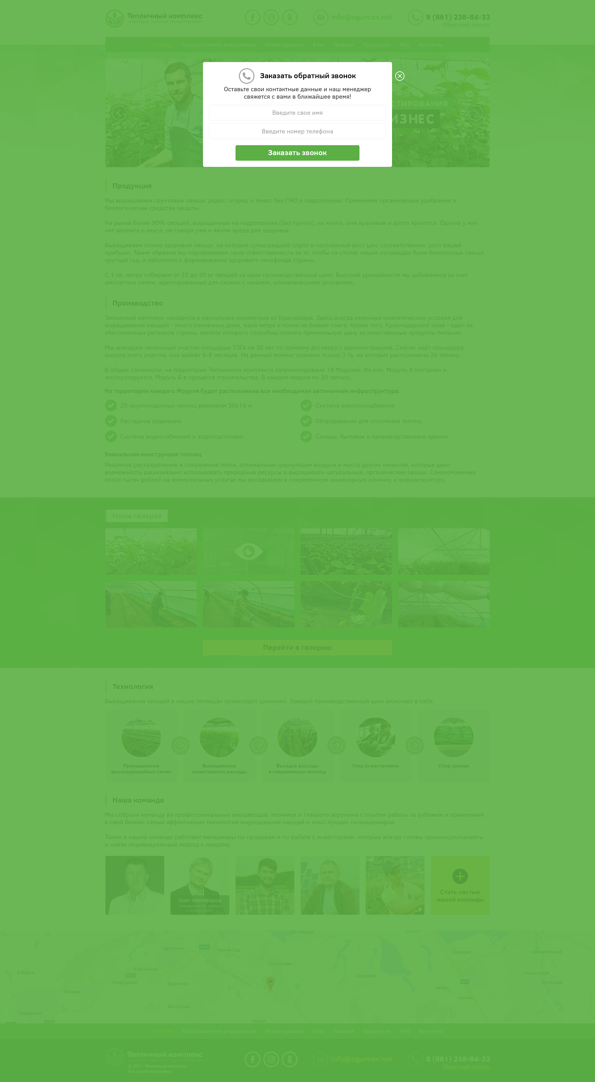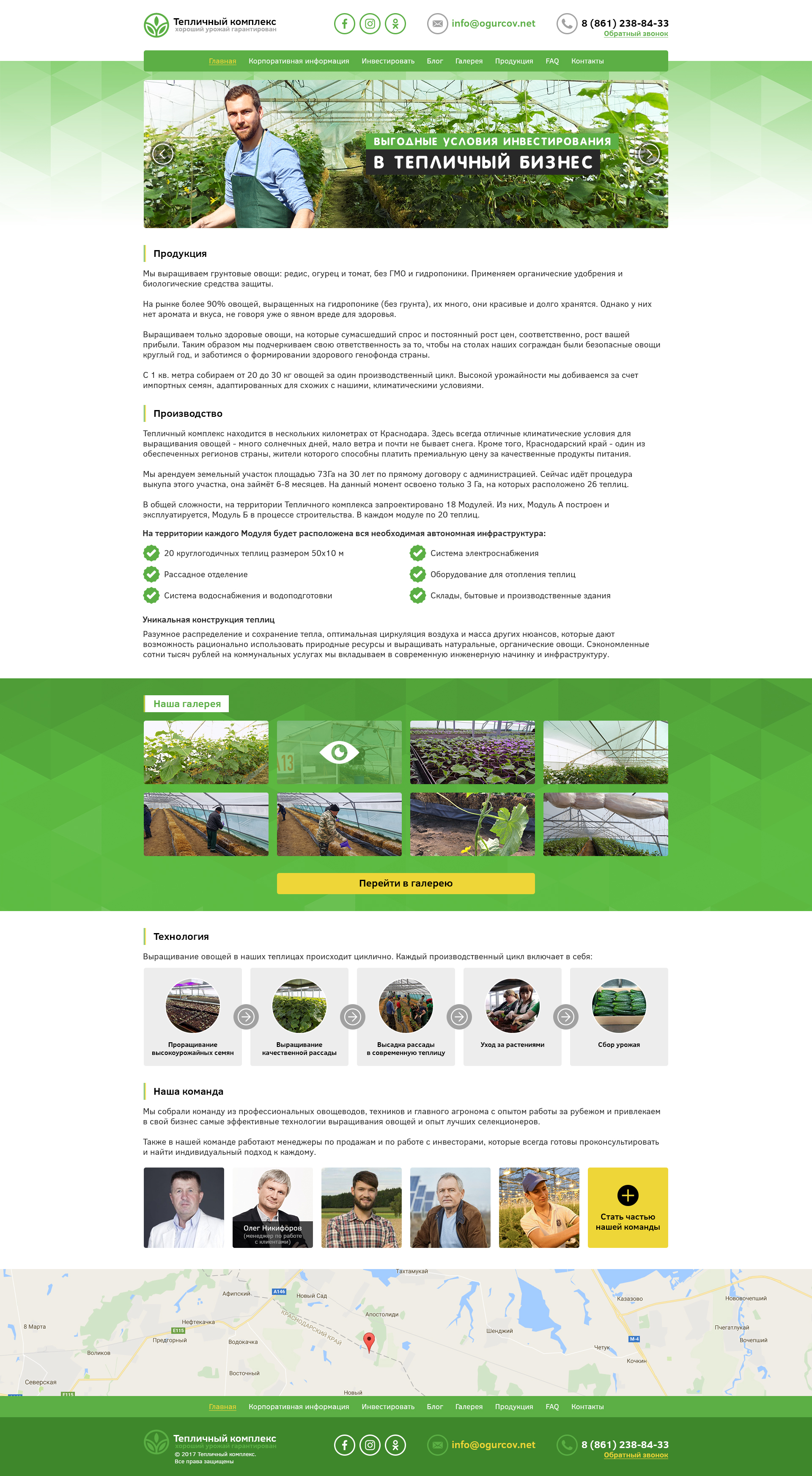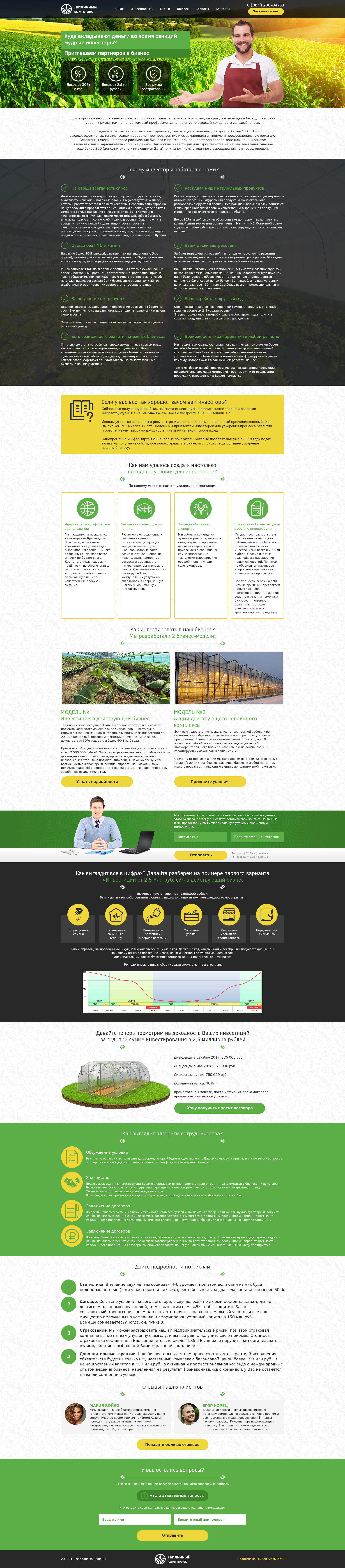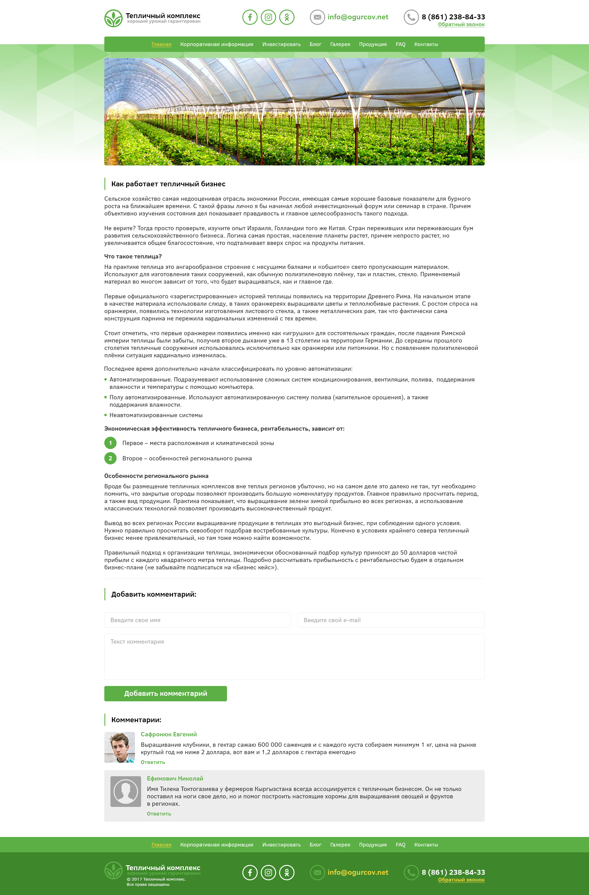 PSD-макеты лендинга и сайта по теме тепличный бизнес