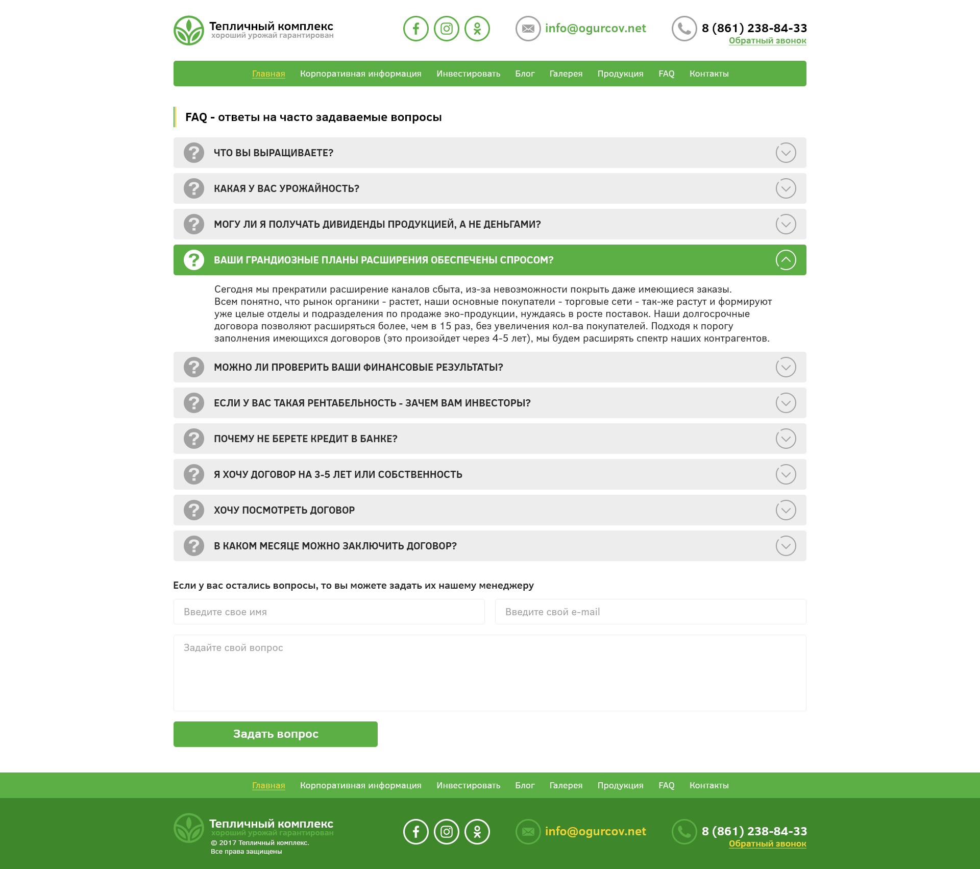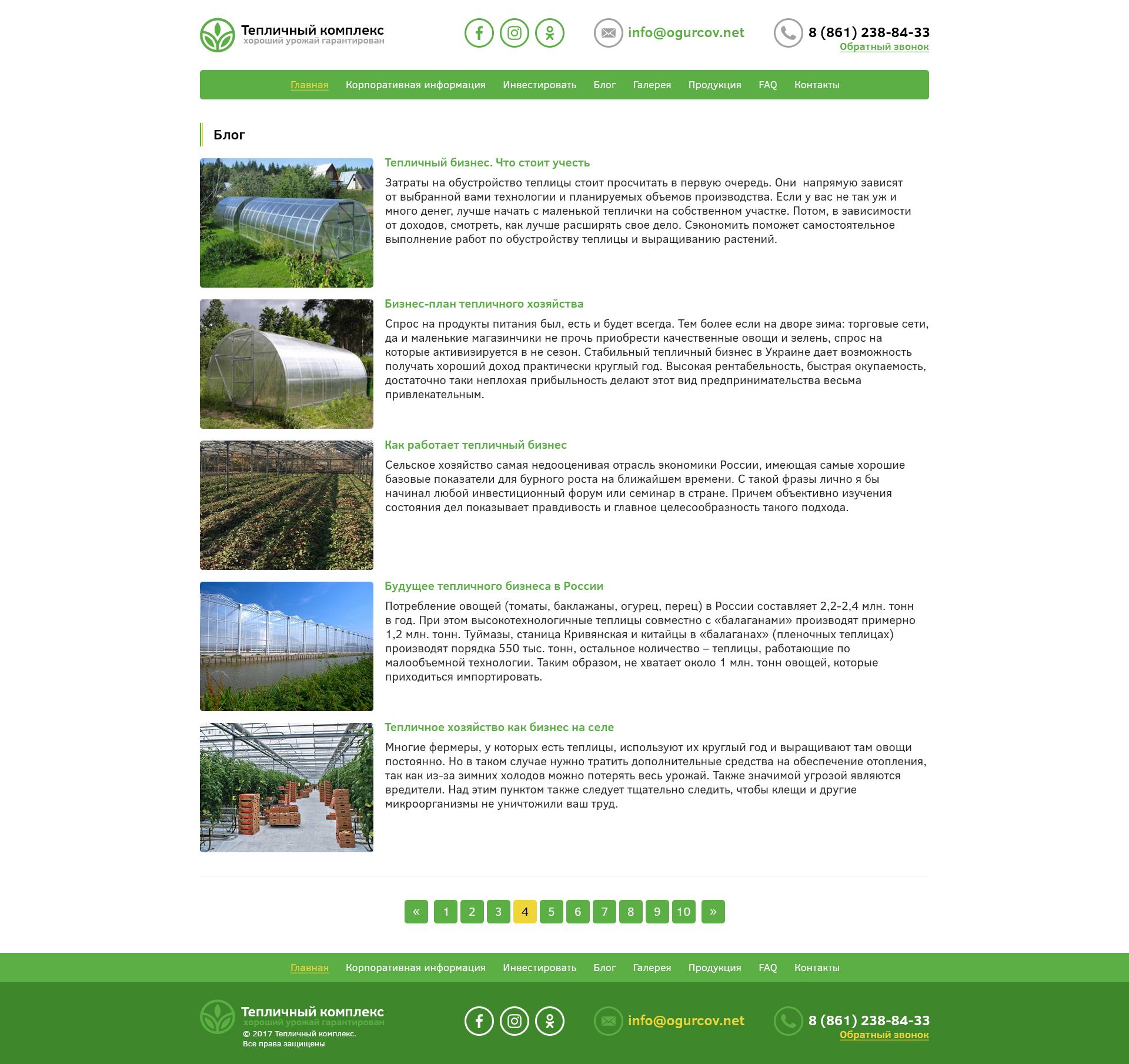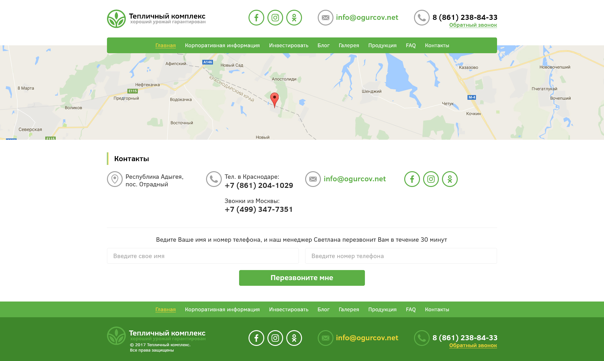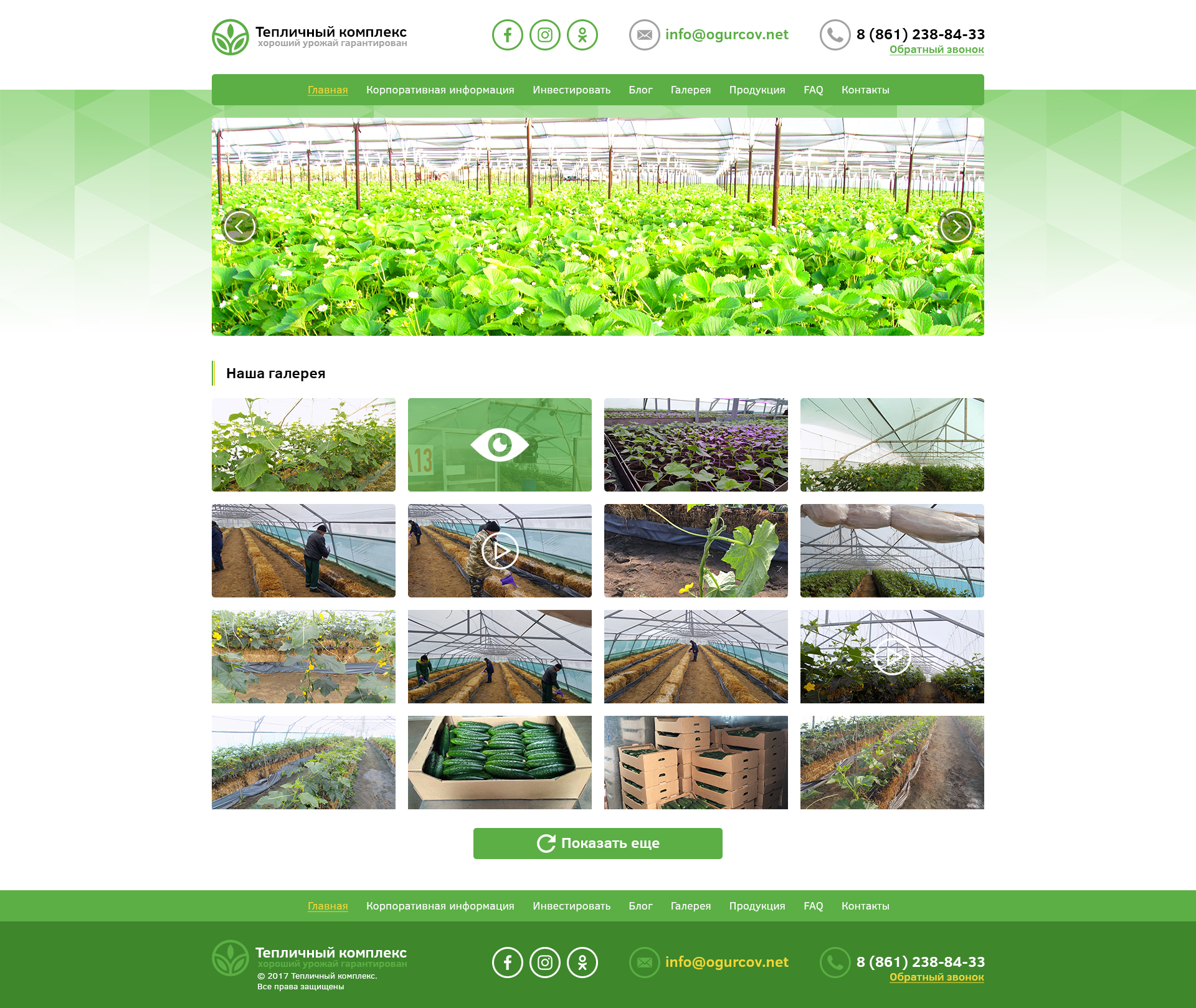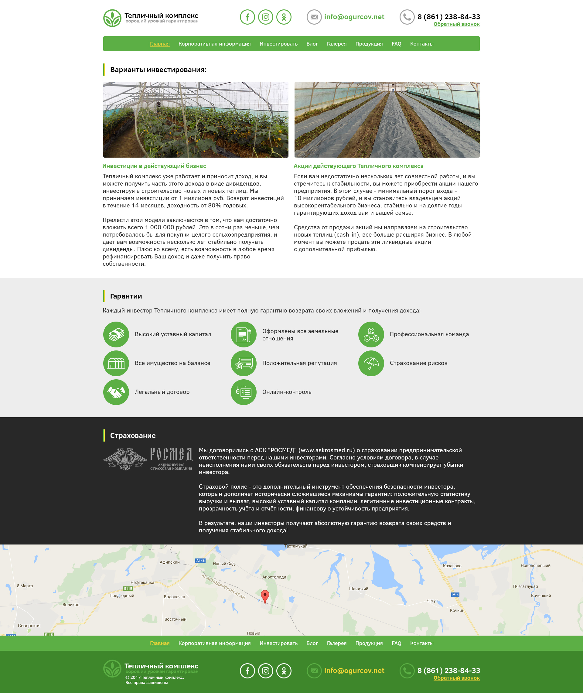 PSD-макеты лендинга и сайта по теме тепличный бизнес