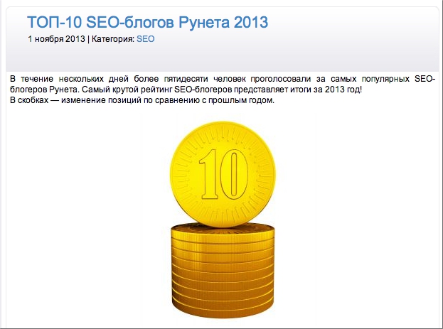 рейтинг не я составлял, а вот ссылка: http://yavbloge.ru/top-10-seo-blogov-2013