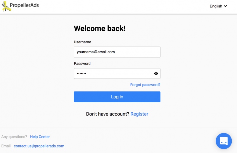 Кликнув по ссылке «Connect to PropellerAds SSP», вы попадете на страницу входа в вашу учетную запись.