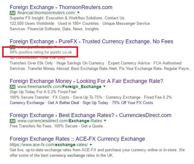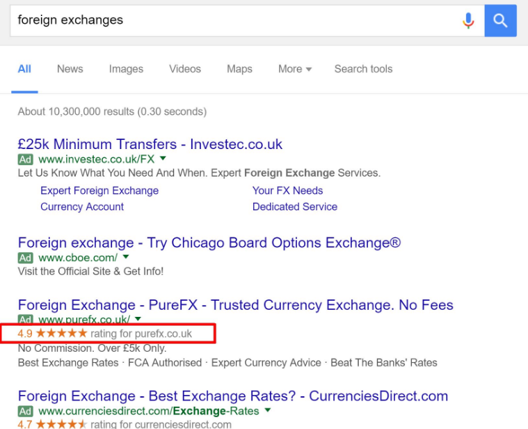 Так выглядит реклама AdWords с рейтингом в виде звездочек: