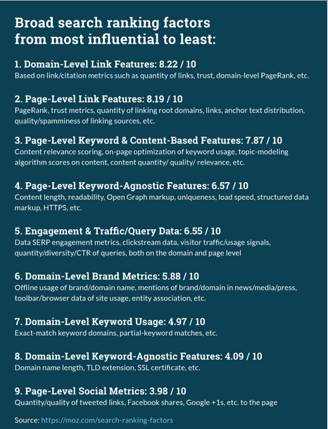 | | Аналитики из компании Moz опубликовали исследование влияния различных факторов на позиции сайтов в выдаче Google. Исследователи обратили внимание на 170 факторов, включая ключи, скорость загрузки, ссылки и анкоры. В отчете также представлены мнения специалистов, опрошенных аналитиками, по той же теме. Финальная таблица факторов ранжирования:  По данным Moz, ссылки продолжают оставаться самым весомым фактором ранжирования Google. При этом отмечено снижение ценности ключевых слов на странице. Использование ключевых слов в домене никак не влияет на позиции сайта, но ключи в анкорах на сторонних сайтах заметно помогают расти в выдаче. Факторы использования безопасного протокола и популярных доменов были признаны незначительными - их влияние слишком мало, чтобы быть интересным оптимизатору. Зато возросла роль социальных сетей - перепосты положительно сказались на позициях многих ресурсов. Как и раньше, частые отказы от страницы и малое время просмотра стали основными причинами "падения" сайтов в выдаче. При этом те, кто сумел удержать читателей, ранжировались заметно лучше. Опрошенные специалисты тоже назвали ссылки лучшим средством продвижения в Google, поставив на следующие позиции ключевые слова и контент. По мнению респондентов, немалое влияние имеют ключи, использованные в мета-информации документа и теге title. Длина контента была названа незначительным фактором ранжирования. Практически все респонденты считают необходимым использовать ключевые слова в адресе страницы, надеясь на более высокие позиции в выдаче. А для того, чтобы не попасть под санкции, рекомендуют избавляться сперва от неестественных ссылок, а затем от некачественного или дублированного контента. Полный отчет Moz доступен здесь. |