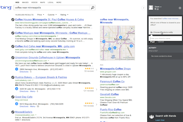 Bing дает возможность поделиться SERP с друзьями в Facebook