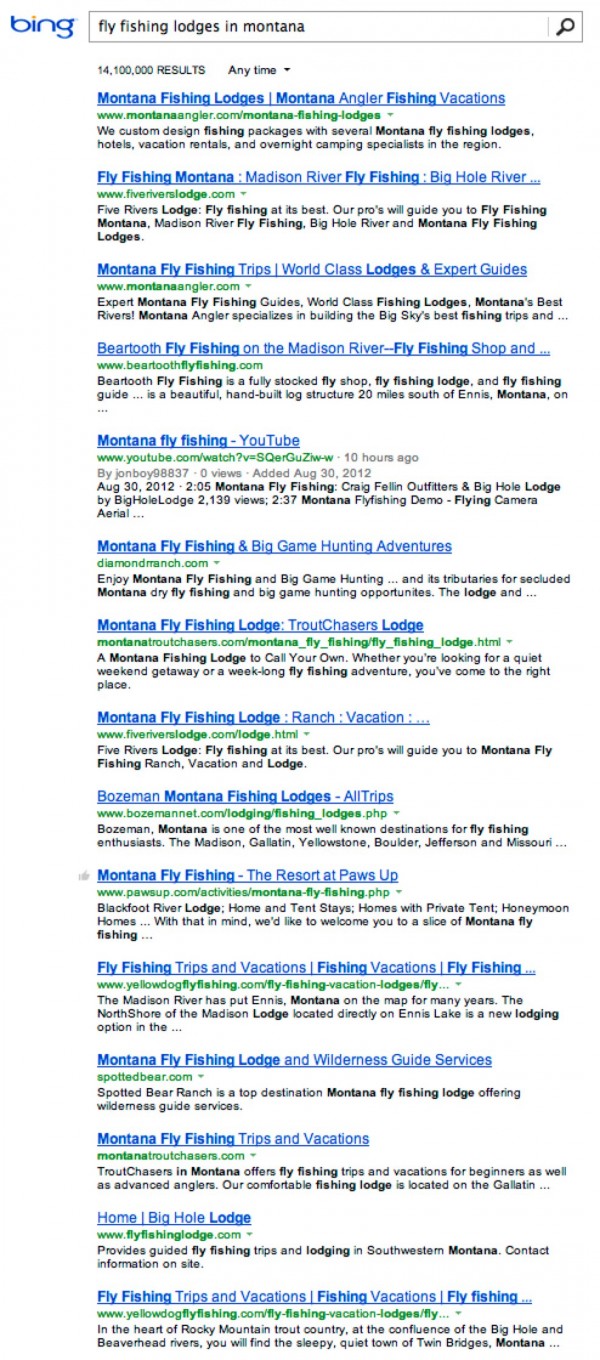 | | Bing проводит эксперименты с показом более десяти результатов на странице выдачи. Это довольно странно, учитывая, что Google, наоборот, недавно в порядке эксперимента уменьшил количество результатов на странице до семи. По заявлению представителей Bing на форуме WebmasterWorld, эксперимент по увеличению числа ссылок был приурочен к июньскому апдейту алгоритма поисковой системы. Вот как выглядело заявление сотрудника Bing: