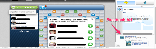 | | Что ждет социальную сеть с 900 млн. пользователей в будущем? Ее ждет рождение рекламной сети, подобной Google AdSense, как считают многие участники рынка. Ресурс InsideFacebook опубликовал свои предположения относительно того, как это могло бы выглядеть. На Zynga.com, сайте, где представлена компания-разработчик игр, сегодня пользователи могут увидеть рекламу из Facebook - Sponsored Stories.   Если вы кликнете на ссылку “Sponsored”, перейдете на страницу вопросов и ответов, на которой поясняется: