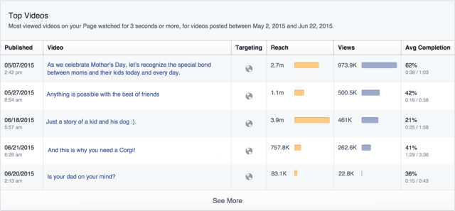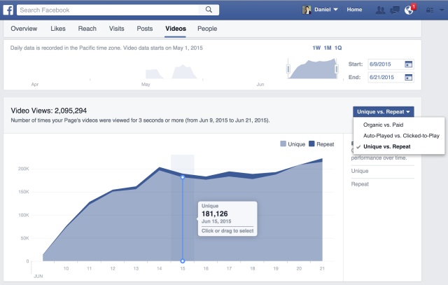 | | В "Статистике" публичных страниц Facebook появилась вкладка "Видео", где можно увидеть эффективность всех опубликованных видеороликов. В частности, можно увидеть количество просмотров, самые активные ролики за некоторый период и даже статистику о переопубликованных с других страниц видео. Вложение 18034 Эффективность видео можно сравнивать:  Отдельно подсчитываются ролики, на которые пользователи уделили более 30 секунд своего внимания. В Benchmark можно увидеть сравнительную эффективность видео с момента его публикации:  Прежде получить данные о видео на странице можно было только индивидуально, выбрав "Статистику" во вкладке "Публикации". Facebook составляет раздел "Популярные видео" на основе данных об охвате, количестве просмотров и средней их продолжительности. Теперь легко определить материалы, обеспечивающие максимальный охват и вовлеченность. При клике по видео администратора перенаправит на статистику ролика.  Доступ к продвинутой статистике, а также поддержка Insights API и экспорта данных, появится в ближайшие недели у администраторов из всех регионов мира. Сейчас через Facebook ежедневно просматривают 4 млрд видеороликов. |