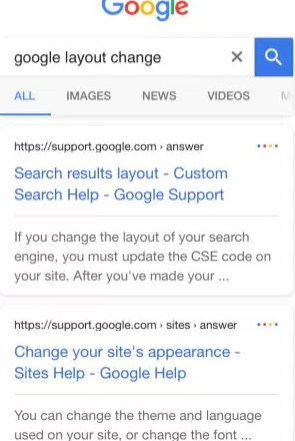 | | Интерфейс мобильной версии поиска Google претерпел значительные изменения, притом обновление видит множество пользователей. Карточки с результатами поиска превратились в скругленные, а заготовки получили новый шрифт, с меньшей толщиной линий. URL страниц перекрасили в черный, а напротив них расположилось многоточие, по тапу на которое появляется вспомогательное меню Google с вариантами действий. На iOS обновление выглядит так: