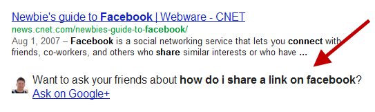 Интеграция Google+ и поисковых результатов Google набирает обороты. Теперь компания добавляет в конце страницы с результатами поиска ссылку, которая предлагает пользователю поискать информацию, касающуюся сделанного запроса, в социальной сети.