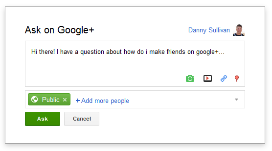 После публикации вопроса он появляется наверху вашей ленты новостей в Google+ и ее могут увидеть те круги, которые вы пометили при публикации.