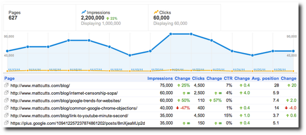 | | Google объявил о запуске новой функции в сервисе Webmaster Tools. Функция называется "author stats" (Статистика для автора) и показывает, как часто контент данного автора появляется в результатах поиска Google. Эту информацию можно будет найти в разделе “labs” (Лаборатория) сервиса Webmaster Tools. В отчете предоставляется количество показов и кликов по публикациям, которые Google нашел (в том случае если этот контент вебмастер ранее связал со своим профилем Google Profile). [IMG]ttp://www.webmasters.ru/pixs/content/4721cc61b2cb48dc9a5ce61acf18263e.png[/IMG]  Ссылки на авторов контента, зарегистрированных в соцсети Google+, минувшей осенью начали отображаться как в основном поиске Google, так и в сервисе Google News. Добавим, что Мэтт Катс тоже рассказал о некоторых возможностях, связанных с проблемой авторства контента, в очередном видеоролике. Он напомнил о такой возможности как уведомления (Google Alerts) для авторов контента. Если в интернете появляется копия контента с упоминанием имени данного автора, он получает оповещение об этом. |