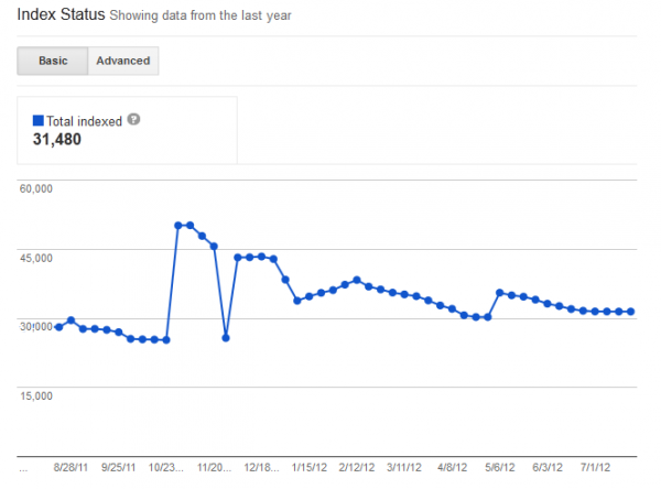 В Google Webmaster Tools появился отчет Index Status (Статус индексации, доступный на вкладке Health), который показывает количество проиндексированных страниц на сайте за последний год.