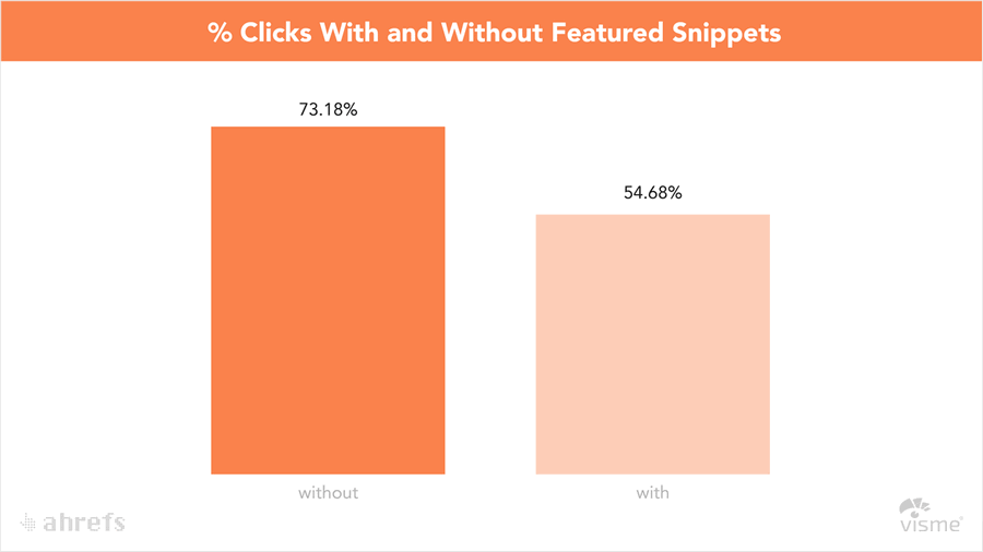 Сейчас "готовые ответы" можно найти более, чем по половине простых запросов. Этот вывод противоречит предыдущему исследованию от Stone Temple Consulting, которые увидели это расширение только на каждом третьем запросе. Возможно, выборка ключей у Visme оказалась менее презентативной.