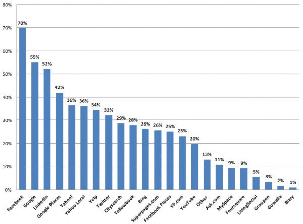 Также стоит отметить, что Facebook (но не реклама на Facebook) был признан самым распространенным инструментом маркетинга для малого бизнеса, его используют 70% опрошенных. Google в этих целях пользуются лишь 55% респондентов.