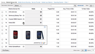 • Mobile Device Info (список моделей телефонов, с которых посещали сайт),