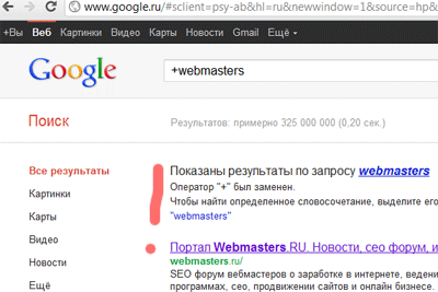 Как известно, до сих пор поиск по точной формулировке можно было осуществлять с использованием либо оператора "+" перед запросов, либо двойные кавычки. Отмети, что в то же время оператор "-" (минус), который исключает из поисковой выдачи страницы, которые содержат то или иное слово, сохранил свою функцию.