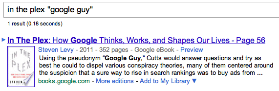 Если поискать с помощью Google запрос о GoogleGuy, мы найдем In The Plex Google Guy: