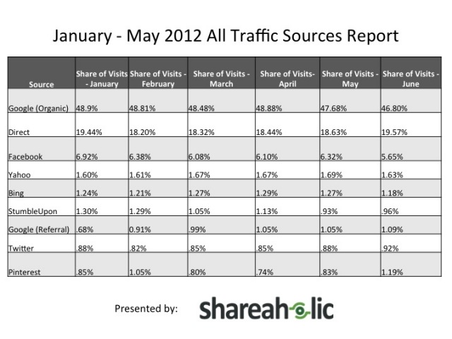 По последним данным, реферальный трафик Pinterest с января по июнь вырос соответственно с 0.85% до 1.19%, что превосходит показатель 1.09% реферального трафика Google. Что, однако, не может даже сравниться с июньским показателем роста в 46.8% органического трафика Google.