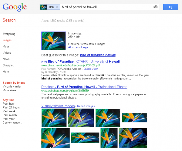 Во-первых, теперь Google стал «умнее» при считывании самого изображения. Если раньше при загрузке пользователем изображения определенной разновидности цветов Google в ответах показывал цветы в принципе, то теперь поисковик постарается угадать тип цветка и выдать действительно похожие изображения.