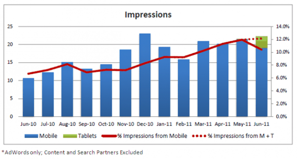 Компания Performics опубликовала исследование, согласно которому мобильный платный поиск увеличил свою долю в общих показах контекстной рекламы до 12%. По количеству кликов, мобильные устройства уже близко подошли к показателю в 12%. Данные компании Performics основаны на статистике, собранной с ее клиентов за первое полугодие 2011.