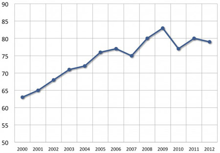 В целом же общая удовлетворенность поисковыми системами снизилась с 80 до 79 баллов за год. В 2009 году этот показатель составлял 83 балла.