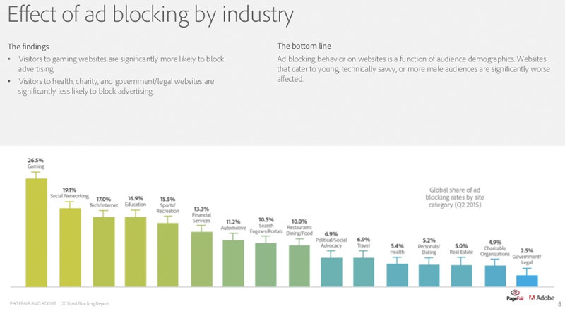 Программное обеспечение для блокировки рекламы в интернете стало настолько популярным, что издатели начали волноваться о своих недополученных доходах. По данным исследования Adobe и PageFair, за 2015 год издатели уже потеряли $21.8 млрд.