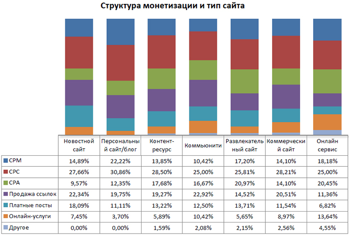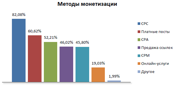 | | 46% монетизируемых веб-ресурсов в рунете зарабатывают на продаже ссылок, согласно результатам совместного опроса Партнерской сети Миксмаркет, интернет-изданий SEOnews и AdmitAd - "Методы монетизации веб-сайтов в Рунете". В ходе опроса, проводившегося с 28 апреля по 15 мая, на вопросы анкеты ответили 452 респондента, из которых 81% заявили, что посещаемость их сайтов ниже 5 тыс. посетителей в день, т.е. это молодые и/или нишевые тематические сайты.  Самый распространенный вариант заработка на сайте – контекстная реклама (CPC), считается, что этот формат оплаты рекламы является "золотой серединой" и позволяет учесть интересы рекламодателя и веб-мастера. 60% вебмастеров ответили, что зарабатывают на платных постах, довольно большая доля сайтов (52%) монетизируется в том числе по схеме CPA (оплата за действие), на четвертом месте по популярности продажа ссылок (46% респондентов), а только после них стоят баннеры (оплата за показы с 45%). Большинство сайтов зарабатывают сразу несколькими способами и только 5-7% респондентов ответили, что монетизируются только 1 или 2 способами.  При этом при выделении категорий сайтов (новостные, коммьюнити, блоги, коммерческие сайты, контент-ресурсы и т.д.), выясняется, что на платных ссылках чаще зарабатывают коммьюнити, а на платных постах – новостные сайты. Модель оплаты CPA наиболее популярна на развлекательных сайтах. Реклама с оплатой за показы активно вытесняется рекламой с оплатой за клики, а также ее начинает вытеснять реклама с оплатой за действия. Продажа SEO-ссылок и платных постов до сих пор приносит партнерам существенный доход, и он составляет 40-50% от общего дохода веб-мастеров. Другие методы монетизации почти не используются, но некоторые веб-мастера продают с помощью сайтов свои услуги и инфо-продукты. |
