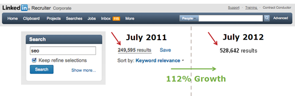 По данным портала Wanted Analytics, в марте 2012 года при помощи онлайн-рекламы было проанонсировано более 3800 SEO-вакансий, что превысило показатели марта 2011 года на 24%.
