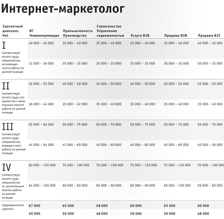 Ниже представлены зарплаты интернет-маркетологов по отраслям в Москве.