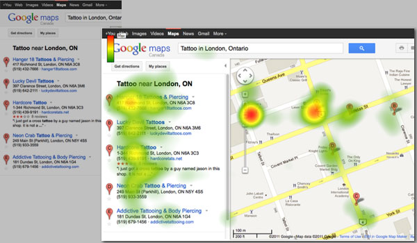 Новое исследование, проведенное по методике eye-tracking и click-tracking (изучает распределение зрительного внимания и кликов на интернет-странице) представила компания Mediative. Исследованию подверглись страницы с региональными результатами поиска Google.