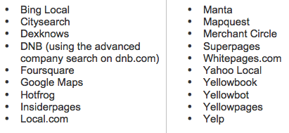 Компания рассмотрела 19 ведущих бизнес-каталогов, в том числе Yelp, Google Maps, Bing Local, Citysearch, Foursquare, Mapquest, Yahoo Local и основные сайты «желтых страниц». Методология исследования сводилась к краулингу и ручной проверке тысячи сайтов региональных компаний США. На основании этого анализа были составлены данные, которые затем сравнивались с представленными в онлайн-каталогах.