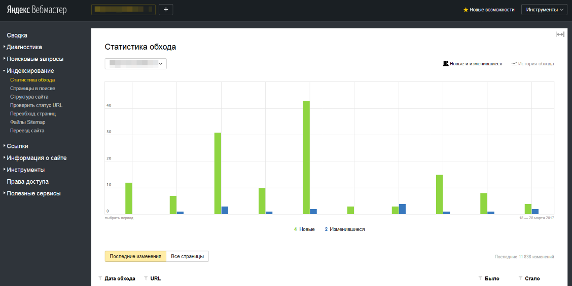 | | Разработчики инструмента "Яндекс.Вебмастер" представили крупное обновление отчета "Статистика обхода". Теперь раздел встречает крупным интерактивным графиком, на котором четко видно количество измененных страниц и график обхода.