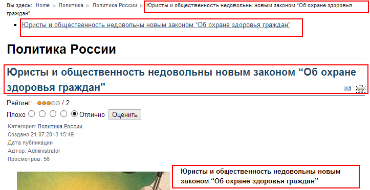 3) _http://novosti-pro.ru/politika/russ-politika/563-yuristy-i-obshchestvennost-nedovolny-novym-zakonom-ob-okhrane-zdorovya-grazhdan Зачем дублировать одно и тоже в title, почему-то ещё в h2 вместо h1, ещё и стронгом сразу в начале статьи.