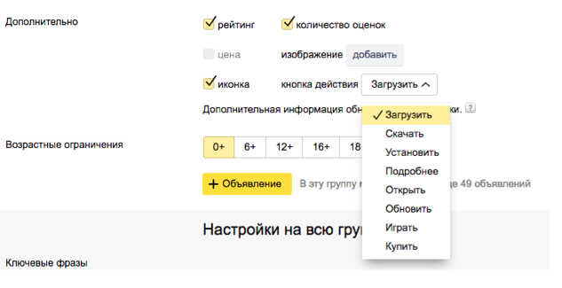 Раньше все подобные кнопки комплектовались текстом "Загрузить". Сейчас рекламодатель получил выбор из нескольких популярных опций - "установить", "подробнее", "играть" и т.п. Всего было добавлено 7 вариаций.
