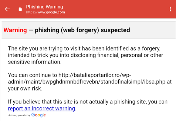 Предупреждение о переходе по вредоносной ссылке будет отображаться при попытке открыть сайт из "черного списка" поисковика.