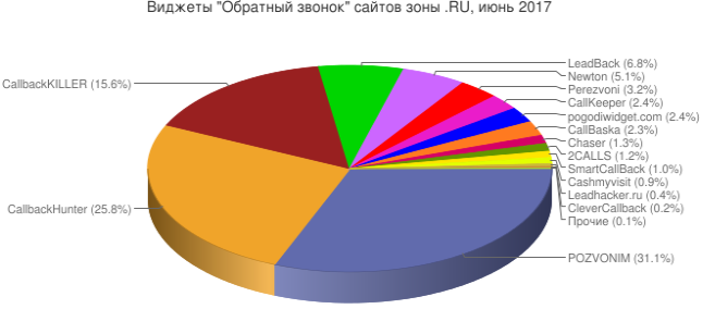 "Обратный звонок" позволяют заказать более 44 тысяч сайтов. Ключевыми поставщиками технологии здесь выступают компании Pozvonim, CallbackHunter и CallbackKiller.