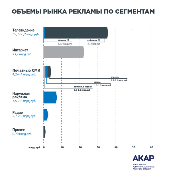 Данные об интернет-сегменте не претендуют на точность, о чем говорят сами эксперты АКАР. Это предварительные значения объема и динамики сегмента.