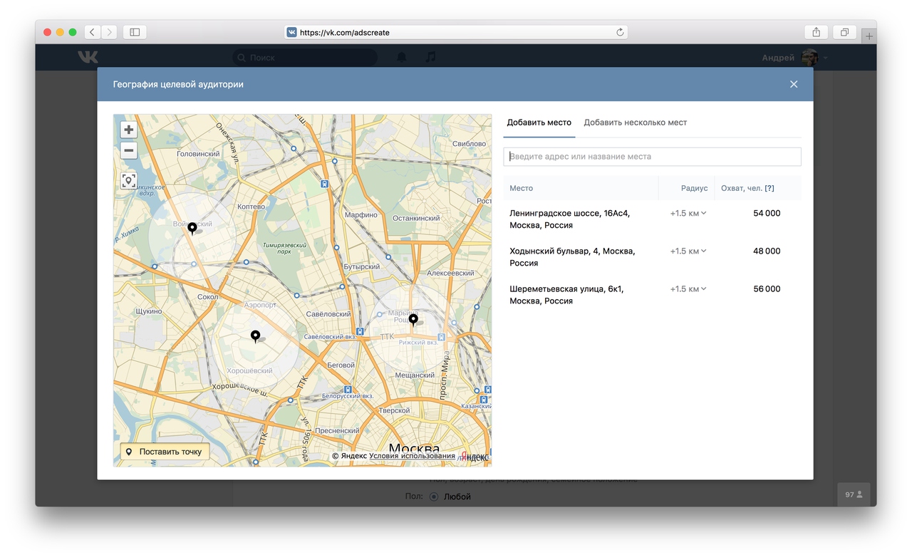 Геолокационный таргетинг ранее был запущен "Яндекс.Директом". В РСЯ допускается таргетировать рекламу по людям, которые бывают в радиусе от 500 метров от нужного адреса.