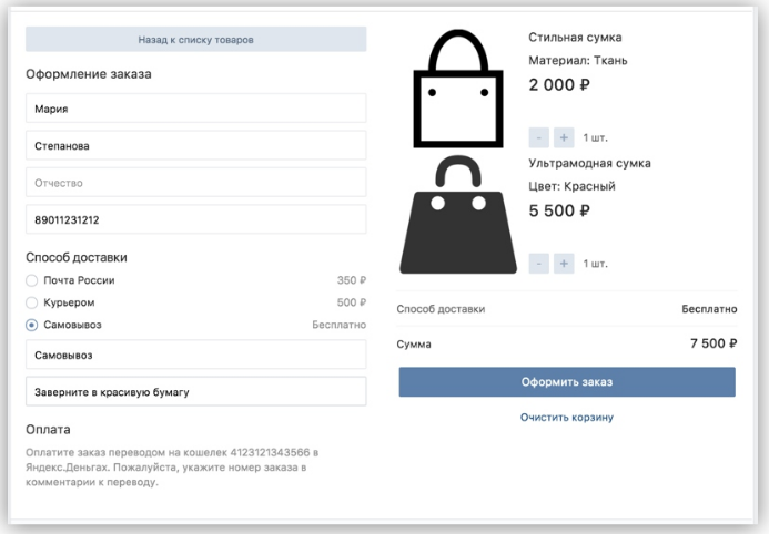 Внутри "Магазина" пользователи могут фильтровать товары по их стоимости и наличию, просматривать подборки и индивидуальные карточки товара. Заказать можно любое количество позиций. Финальная сумма рассчитывается с учетом доставки.